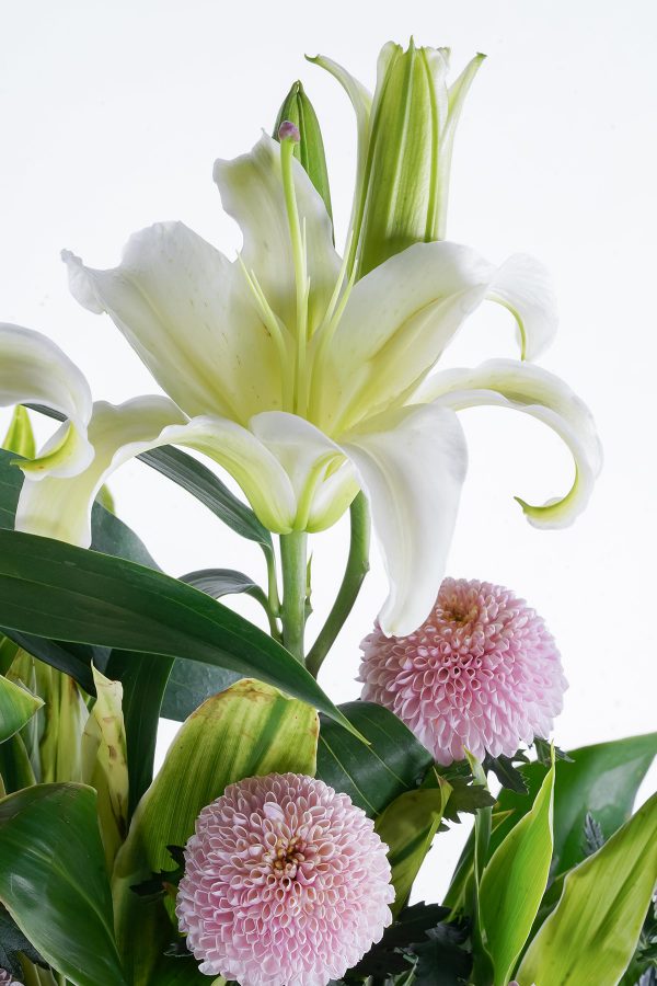 In the event that certain flowers (Color according to the availability) are not available, we will replace with flowers of similar in style, quality and value while maintaining the overall look and feel of the arrangement.